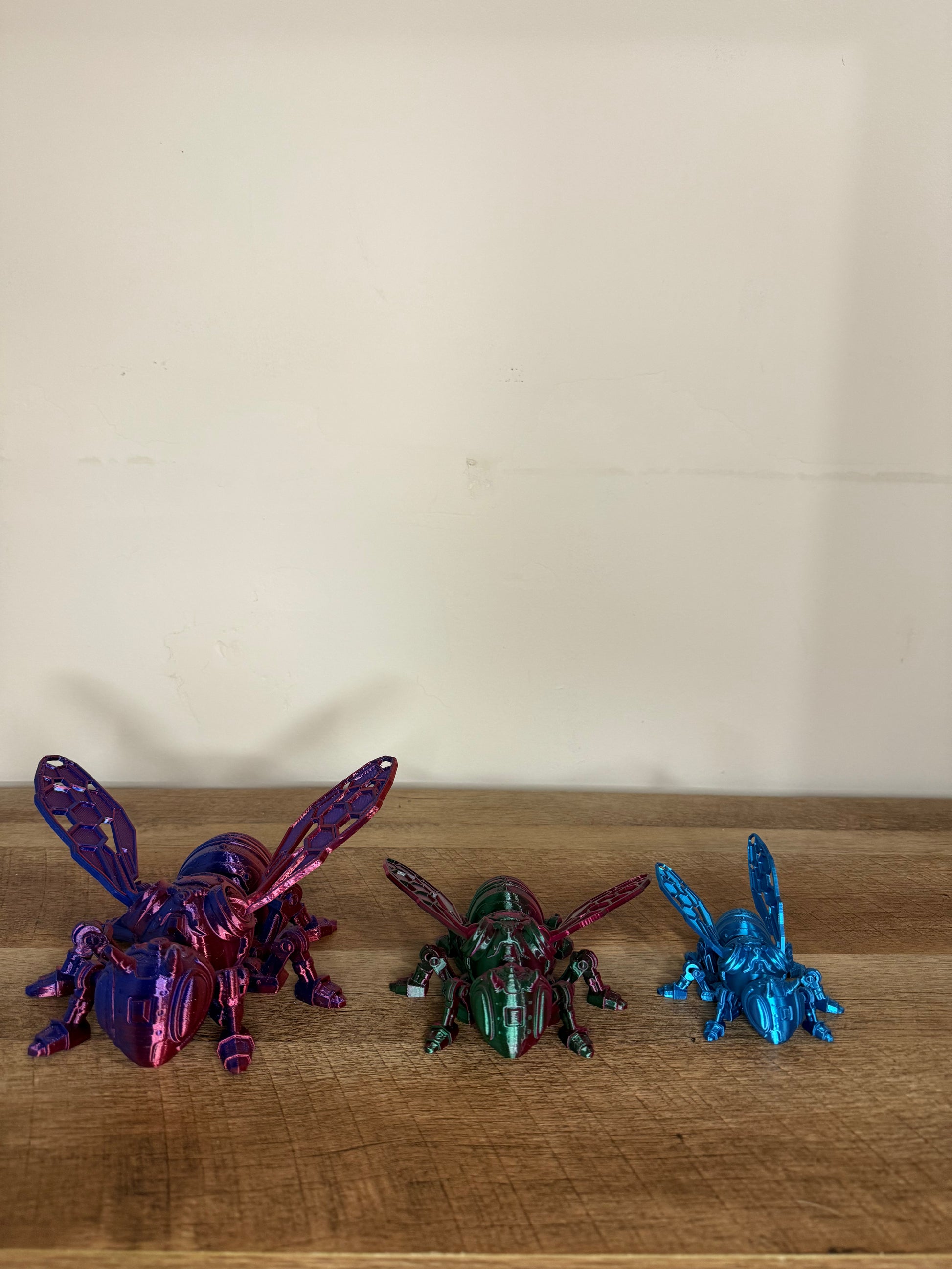 Meet the Cyber Bee, a buzzing blend of nature and technology in 3D printed form! This quirky figure adds a high-tech twist to your collection, perfect for fans of futuristic fun. Its intricate design captures the charm of a bee with a cyber edge, making it a playful conversation starter on any desk or shelf.