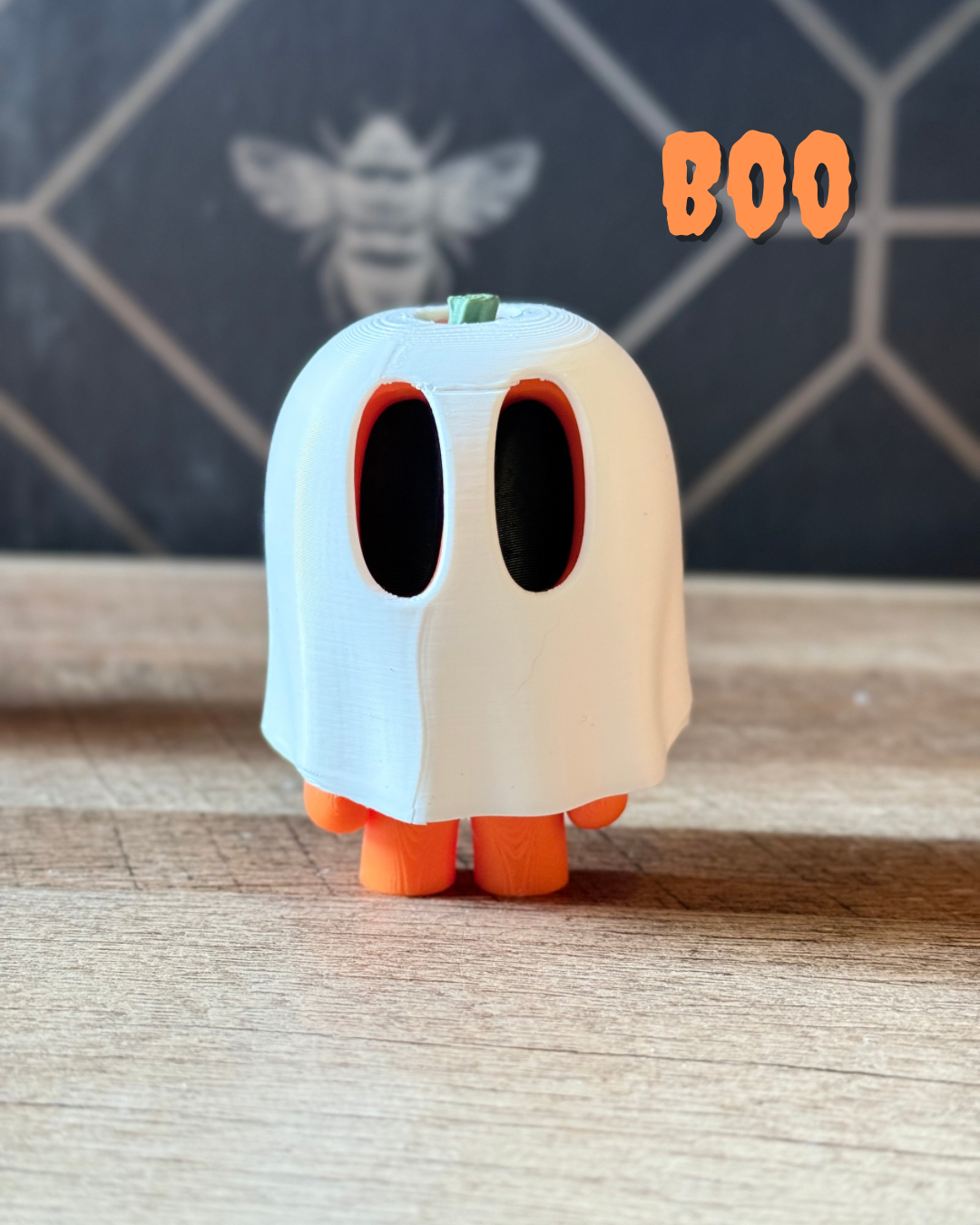 Our pumpkins come in their traditional colours of orange and green with the exception of Boo who has his ghost sheet on.......